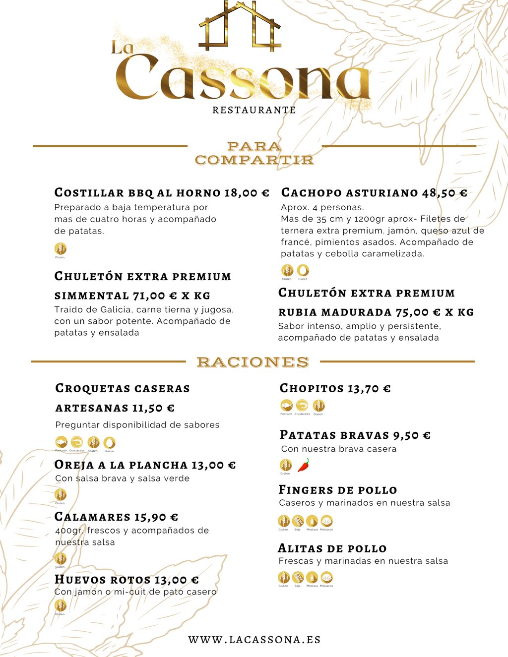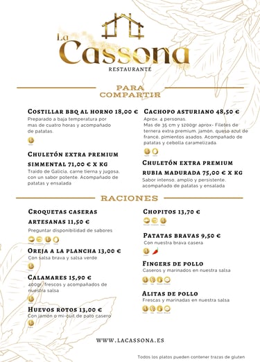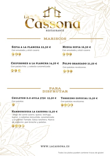 En La Cassona, estamos emocionados de invitarles a explorar nuestra variada carta, diseñada para satisfacer todos los paladares. Desde nuestras suculentas carnes maduradas hasta la exquisita mariscada, cada plato está preparado con los mejores ingredientes y mucho cariño.
